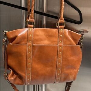 Elegant Patricia Nash leather tote with gold stud detailing. Ideal for daily use.