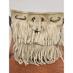 Patricia Nash Tan Suede Leather Fringe Bronte Bucket Crossbody Shoulder Bag