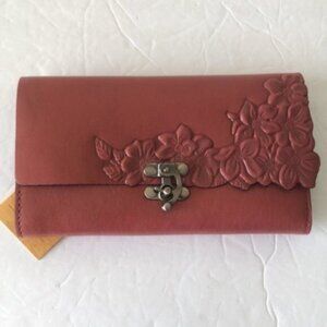 Patricia Nash Terresa Leather Wallet Hand Cut Tooled Pink