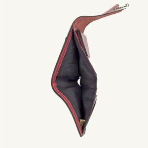 Interior: 7 credit card slots, center snap coin pocket, 1 bill pocket, 2 slip pockets; leather trim, nylon lining