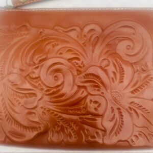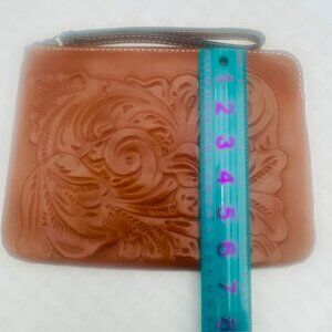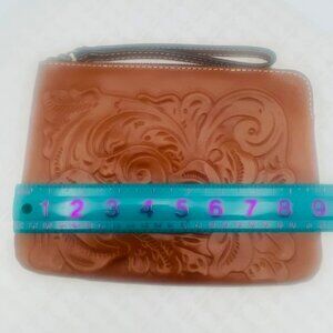 Patricia Nash Tooled Leather Cassini Wristlet Cognac Brown