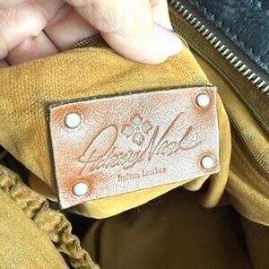 Patricia Nash Tooled Leather Tote Black Brown Fringe Handles Boho Western Bag