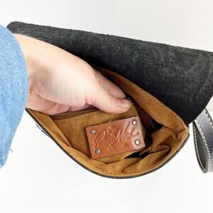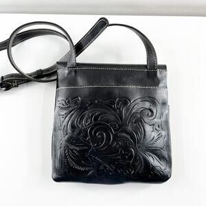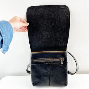 Patricia Nash Tooled Square Leather Crossbody Flap Bag Purse Black