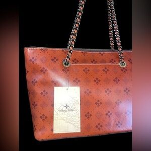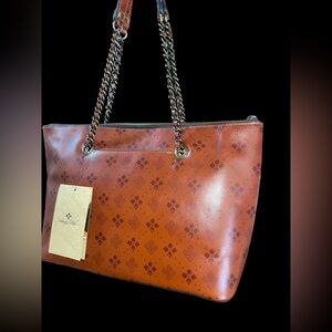 NWT Patricia Nash leather tote / shoulder bag color tan, with outside pockets on both sides, zipper for closure, in perfect condition from a smoke free home