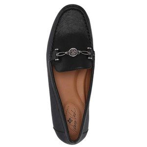 ~ New with box~ Metallic hardware and a sophisticated moc-toe profile combine in supple leather adding wear-anywhere versatility to your favorite looks in the Trevi loafers by Patricia Nash. Round-toe moccasin loafer flats Hardware detail at toe cap Contoured insole with anatomical arch support and separate cushioned heel pad for added comfort Leather upper; man made sole Imported Color: black