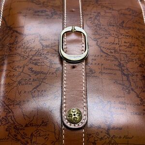 Beautifully crafted Patricia Nash crossbody bag made from genuine leather, featuring her signature vintage world map print. This classic piece combines timeless design with practical functionality, perfect for everyday use or travel.