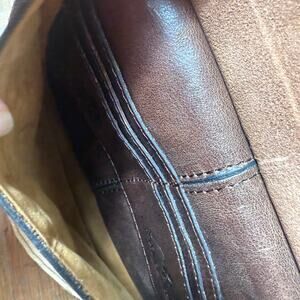 Two zip compartments and detailed front pocket. Features rear zip pocket, embossed tooling detail/whip stitched edges.