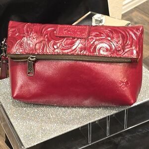 Patricia Nash Valerie Tooled Leather Fold-Over Wristlet- Magenta