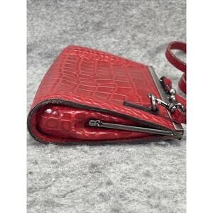 Patricia Nash Vallina Croc Embossed Red Leather Frame Crossbody Purse Handbag