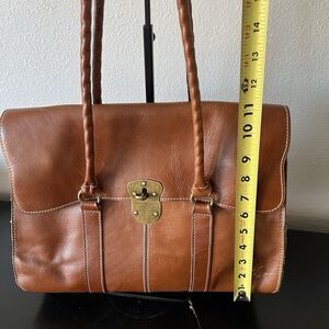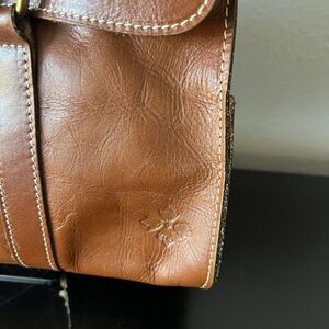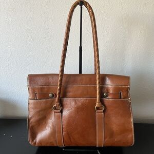 Patricia Nash Vienna Satchel Handbag Brown Tan Leather Large Bag Twist Lock