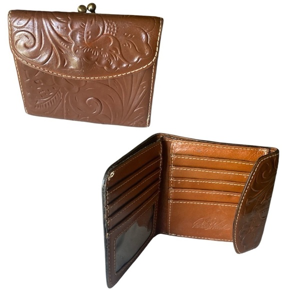Patricia Nash Vintage Bi-Fold Wallet with Coin Pouch Brown W 5” x H 4.5”