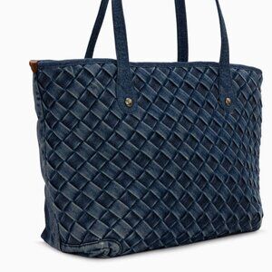 Patricia Nash Viotti Tote with Greek Map Scarf - Washed Woven Denim - NEW