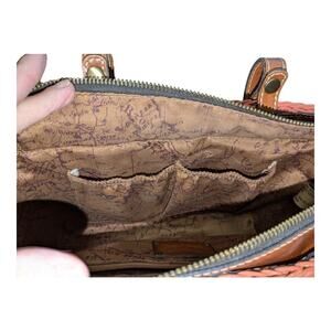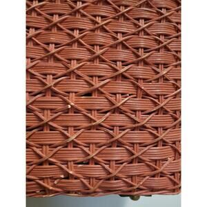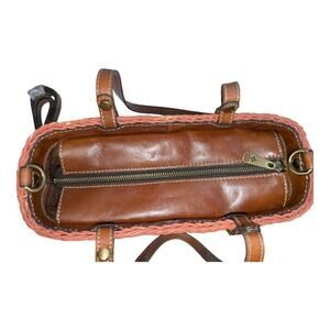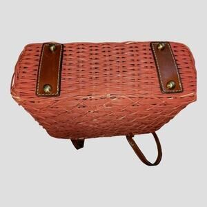 Patricia Nash Wicker Straw Weave Purse Handbag Orange Brown Leather