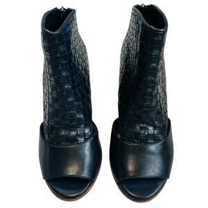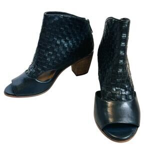 Patricia Nash WomenSz 7 Black Woven Leather Ankle Booties Boots Rosetta Open Toe