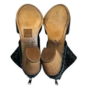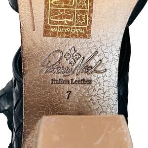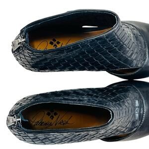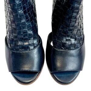 Patricia Nash Women’s Sz 7 Black Woven Italian Leather Rosetta Open Toe Ankle Bootie Boots. Excellent condition.