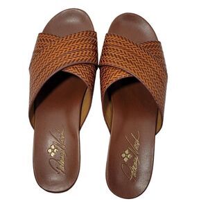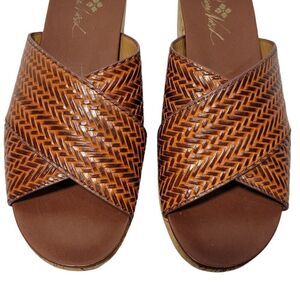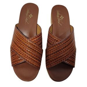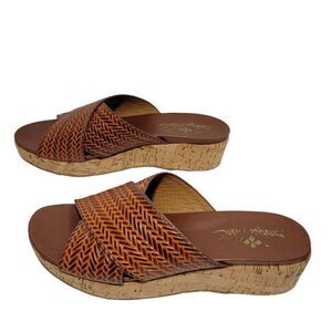Patricia Nash Womens Sandals Size 8.5 M Luca Slip On Leather Slide Wedge Cognac