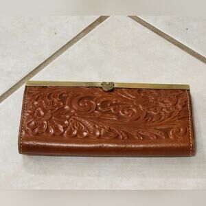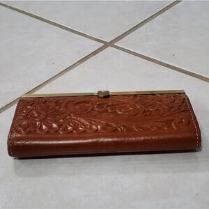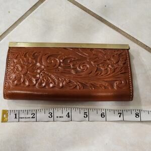 Patricia Nash brown floral tooled leather Cauchy Wallet