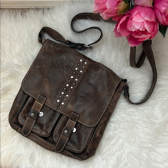 Patricia Nash vintage brown leather crossbody satchel, gently loved in overall great condition besides some minor wear