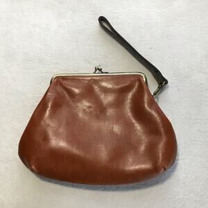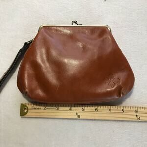 Patricia Nash cognac tan leather wristlet small purse with kiss closure