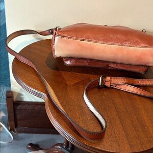 Patricia Nash leather Crossbody bag cut out leather trim brown large front poc