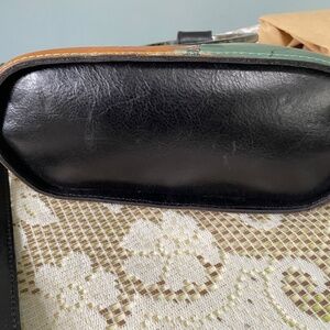 Patricia Nash, leather Paris themed and patterned bag can be used either off the shoulder as a Crossbody bag or carried by its 2 handles. It has a main zipper closure and a small zipper compartment on the side great condition hardly used and clearly a collectible.