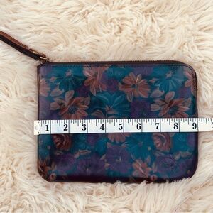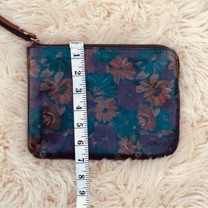 This elegant clutch from Patricia Nash features a striking blue and brown color palette with a floral design. Crafted with a convenient wrist strap, it's perfect for carrying your essentials in style. The compact size and zippered closure make it an ideal accessory for any casual outing.