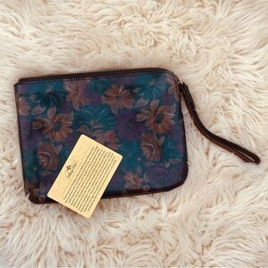 Patricia Nash Blue and Brown Floral Clutch NWOT