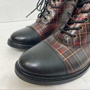 Combat boots, lace up boots, chunky, heeled, plaid, red, punk, rocker, preppy, dark academia, fall, winter, warm
