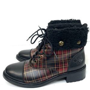Patricia Nash Lia Cold Weather Booties Black and Red Plaid with Shearling Cuffs