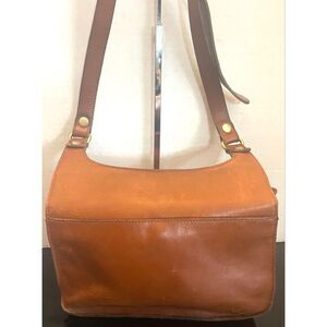 This elegant cognac brown leather shoulder bag is perfect for any occasion. Its sleek design and high-quality material make it a must-have accessory. The rich brown color adds a touch of sophistication to your outfit. Beautiful Preowned Condition.