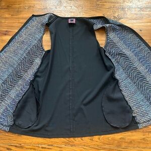 Patricia Palson Textured Blue & Grey Woven Zip Vest Sleeveless Jacket One Size