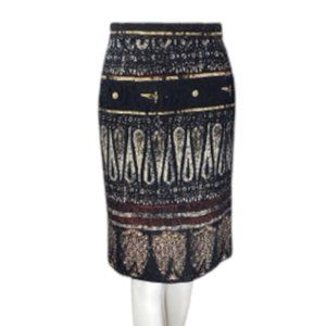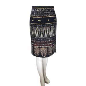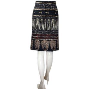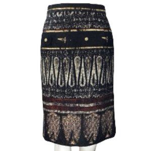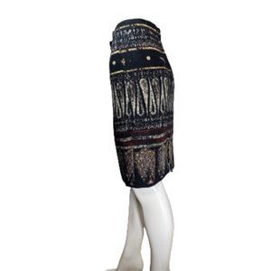 Patricia Rhodes Black Wool Silk Blend Ethnic Print Skirt 6