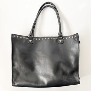 Patricia Nash Black Leather Tote Shoulder Bag Handle Purse Studded Trim Satchel Smooth Leather Gold Silver Hardware