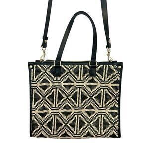Patricia Nash Black & Tan Tuareg Woven Ava Medium Leather Crossbody Tote