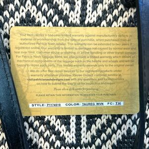 The Patricia Nash tote bag features a striking geometric pattern in black and cream, exuding a contemporary and stylish appeal. Its structured design and spacious interior make it an ideal choice for everyday use, while the elegant black trim and handles enhance its sophisticated look.
