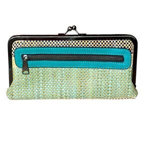 Patricia Nash Elegant Italian Straw Cream and Teal Women's Wallet