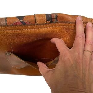 Patricia Nash Vintage Patch leather saddle bag Nepali Coast Hawaii suede inside