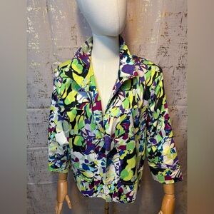 Vibrant Bright Multi-Color jacket with abstract patterns. Features a stylish design by Patrick Christopher.