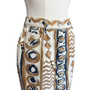 Patrick Cox Denim Geometric Pattern Skirt 10 Designed in England 100% Cotton