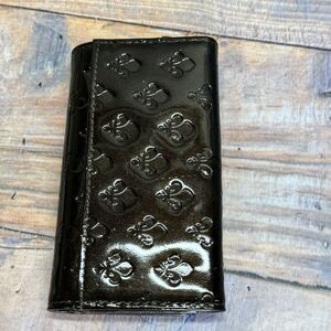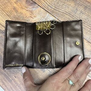 Patrick Cox Tri-fold Brown Patent Leather Key Wallet Women's Fleur de Lis