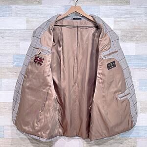 Patrick James Vitale Barberis Canonico Sport Coat Taupe Check Wool Silk Mens 46L