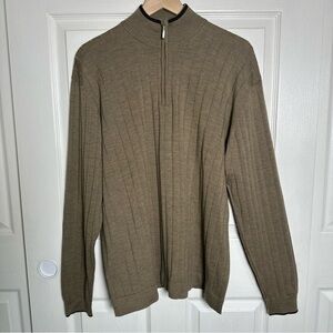 Patrick James XL 100% Fine Merino Wool Polo Sweater Mock Neck Brown Fall Staple