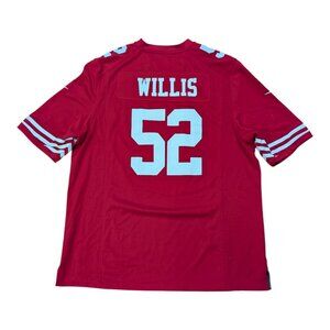 The product is a Nike on-field jersey of San Francisco 49ers player Patrick Willis, featuring his official number #52 in size XL. This officially licensed NFL apparel is designed for men and is in the team's signature red color. Perfect for football fans looking to show their support for both the player and the team during the regular season games. Made in the country/region of manufacture, this jersey is a must-have item for any avid fan of the San Francisco 49ers and football in general.