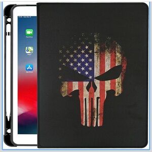 Protect your tablet with this stylish black case featuring a bold American flag design. Perfect for showcasing your patriotic spirit while keeping your device safe.