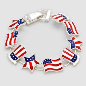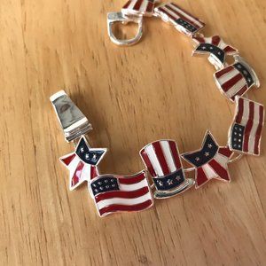 Patriotic Bracelet American Flag Uncle Sam Hat Stars Magnetic Closure July 4 New