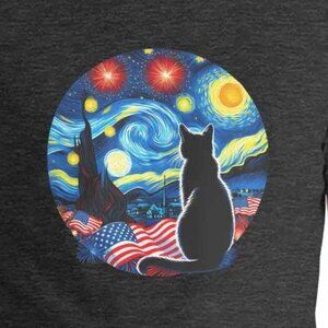 Patriotic Cat Shirt, Starry Night July 4th Fireworks Tee, American Flag Tshirt