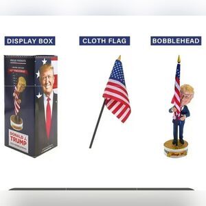 Patriotic Donald Trump Bobblehead with Removable Cloth Flag - Resin Collectible