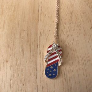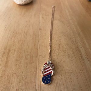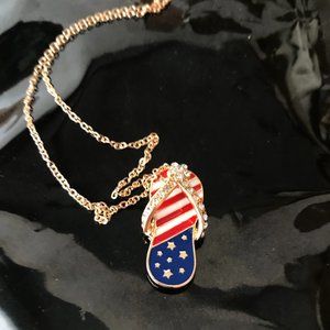 Patriotic Flip Flop Necklace 16" Chain Beach July 4 Memorial Labor Day Jewelry