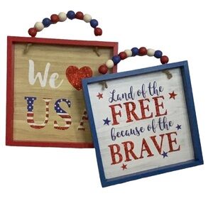 Patriotic Garden Flag 2 Wood Wall Plaques 4th July Decor 3 Piece USA Bundle NEW