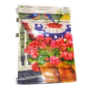 Bluebirds, Geraniums and American Flag Bunting Garden Flag 12.5 X 18 in Red White Blue Patriotic Multicolor from Evergreen Company